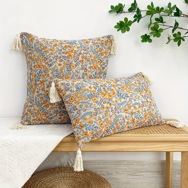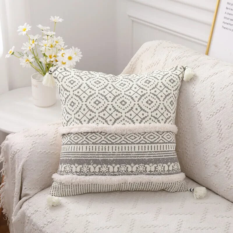 Los cojines boho con borlas, los de lino natural en tonos neutros y los geométricos tipo jaquard están entre los más buscados este 2025.