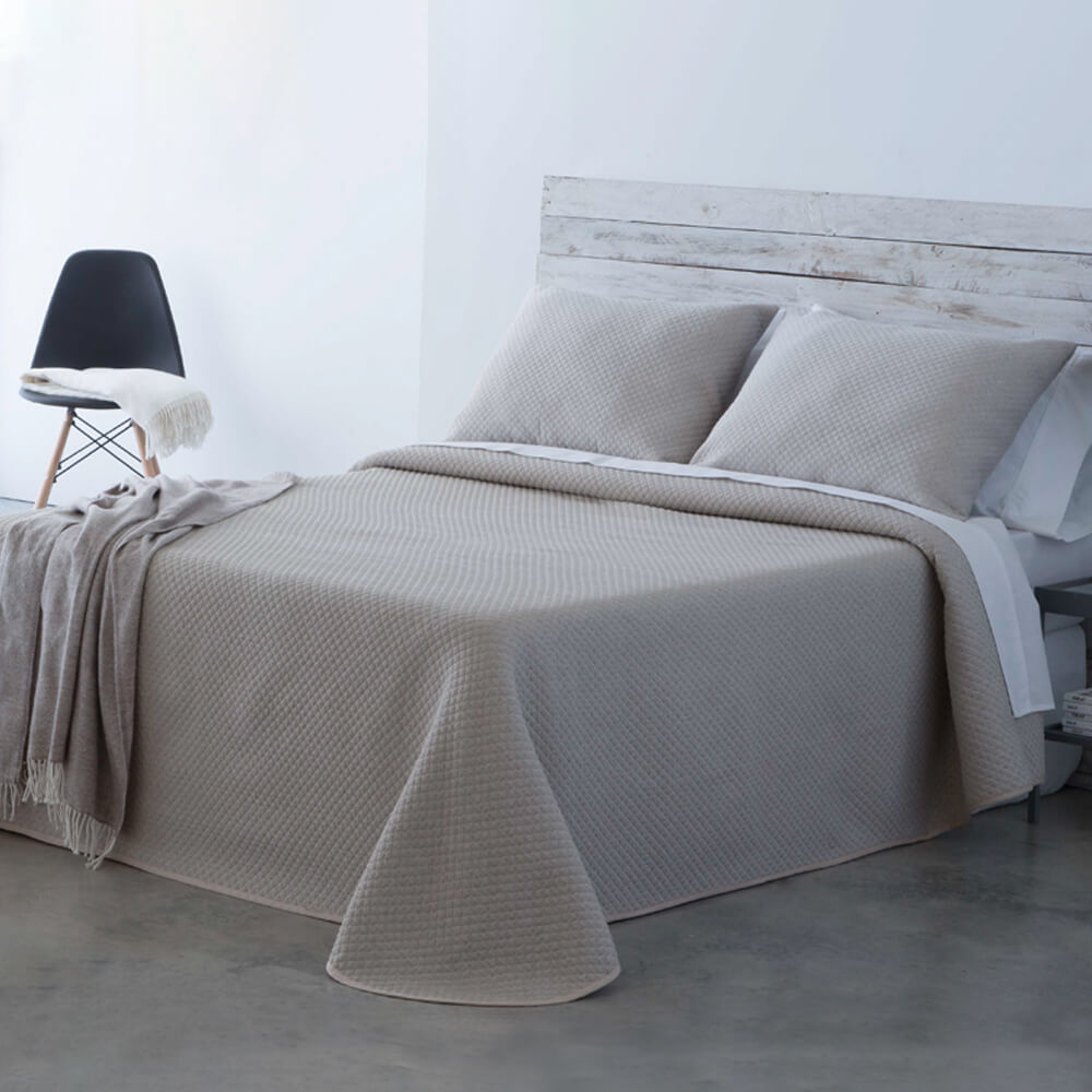 Colcha bouti selada a quente com desenho geométrico de patchwork em liso, muito elegante e fresco.
