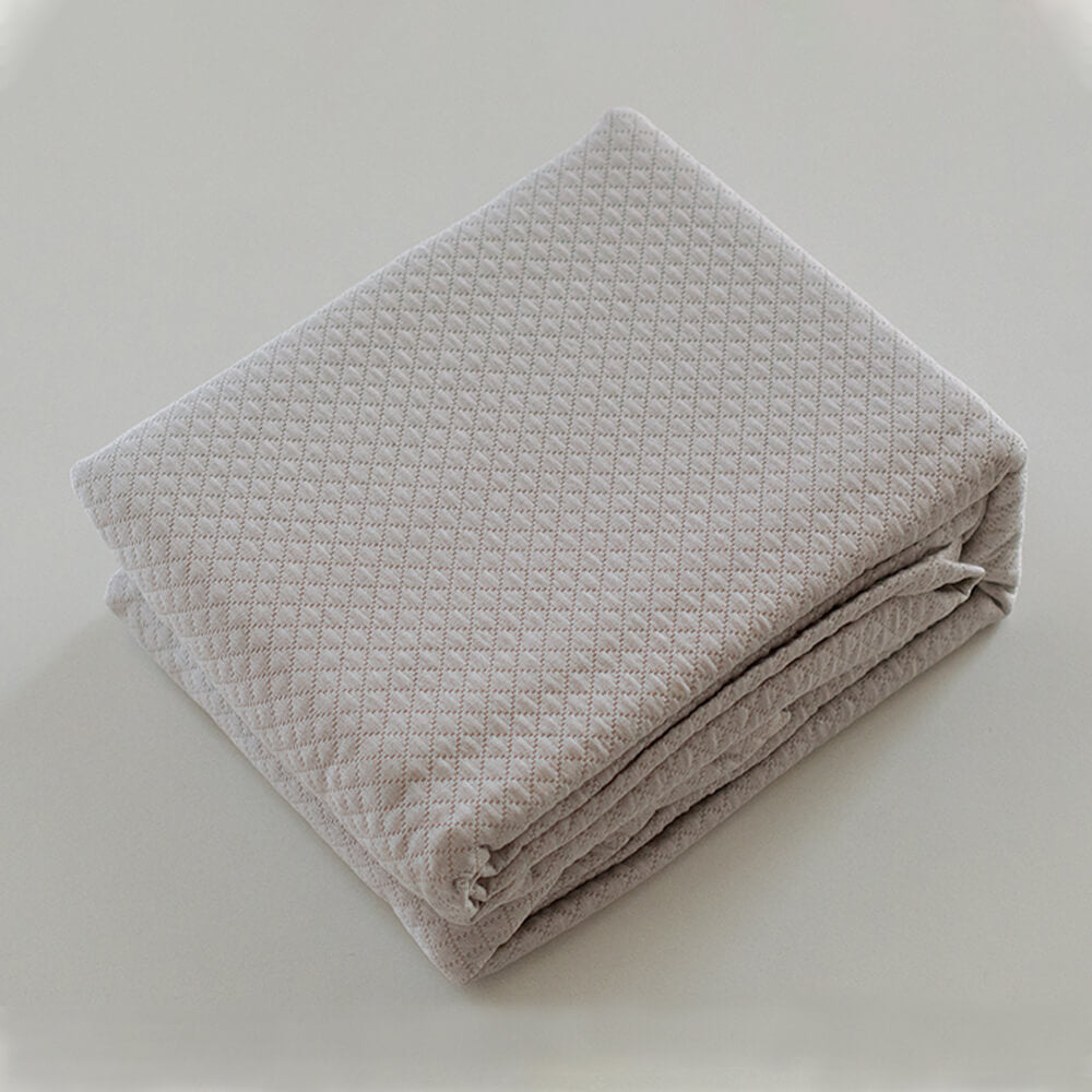 Colcha de retalhos geométrica com enchimento fino. Cor bege.