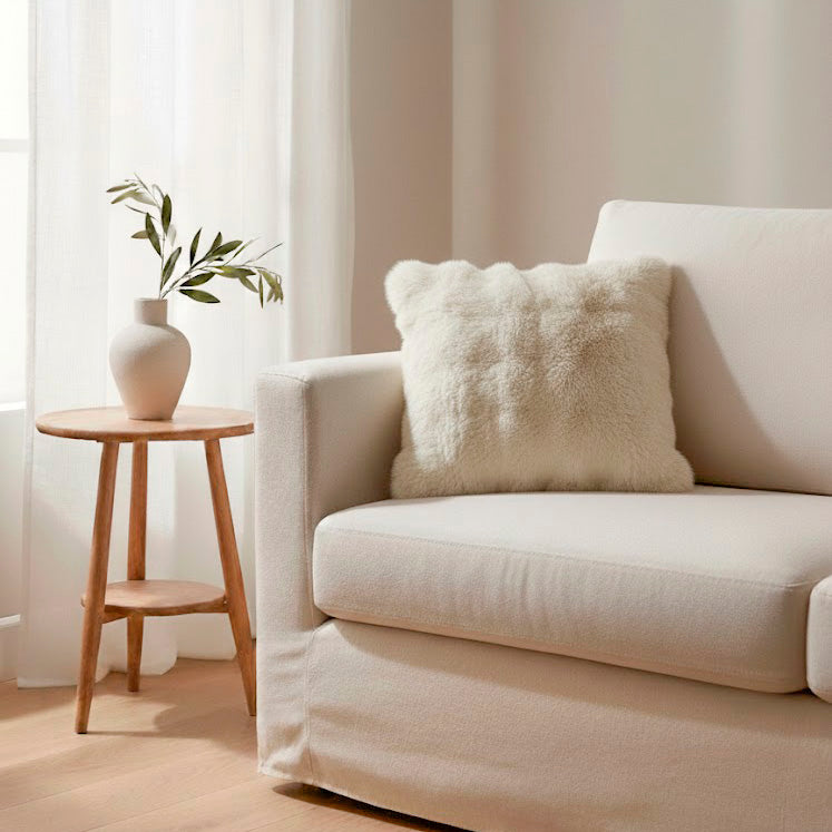 Funda de Cojín de pelo corto extra suave blanco roto – Elegancia y confort en tu hogar