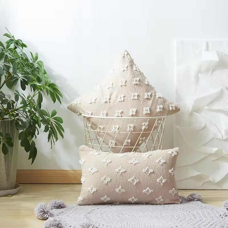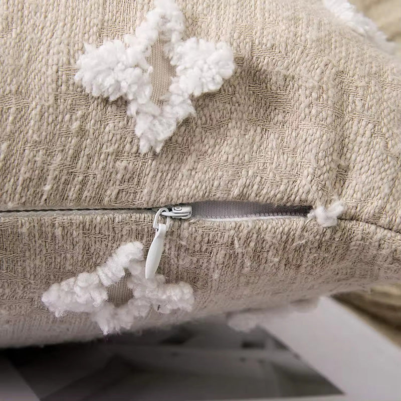 Capa de almofada em linho e algodão natural. Almofada lisa bege para decorar o quarto ou a sala. Almofada com tecido natural graças às fibras naturais de linho e algodão.